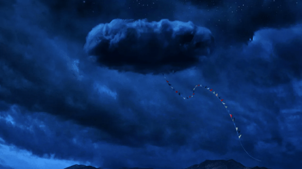 Another huge highlight of this movie is the setting: this huge and arid ranch which allows the camera to play with colors, shadows and large areas of nothingness that confirms how monumental is the creature in the sky. And about that… it was such a clever way to bring back at first the UFO subject, while giving this whole new element to this extraterrestrial being: animality. Because Nope is all about this: the animal world and its rules. The prey and the predator and how to coexist.